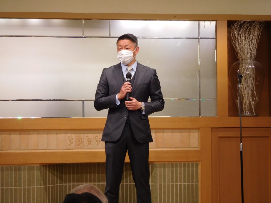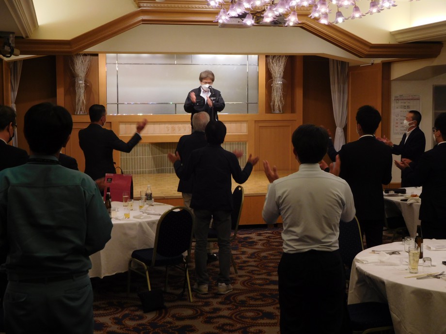 その後の懇親会も、来賓の方や新旧役員のあいさつ、新入社員のお披露目、ゴルフの結果発表など楽しく過ごし、
